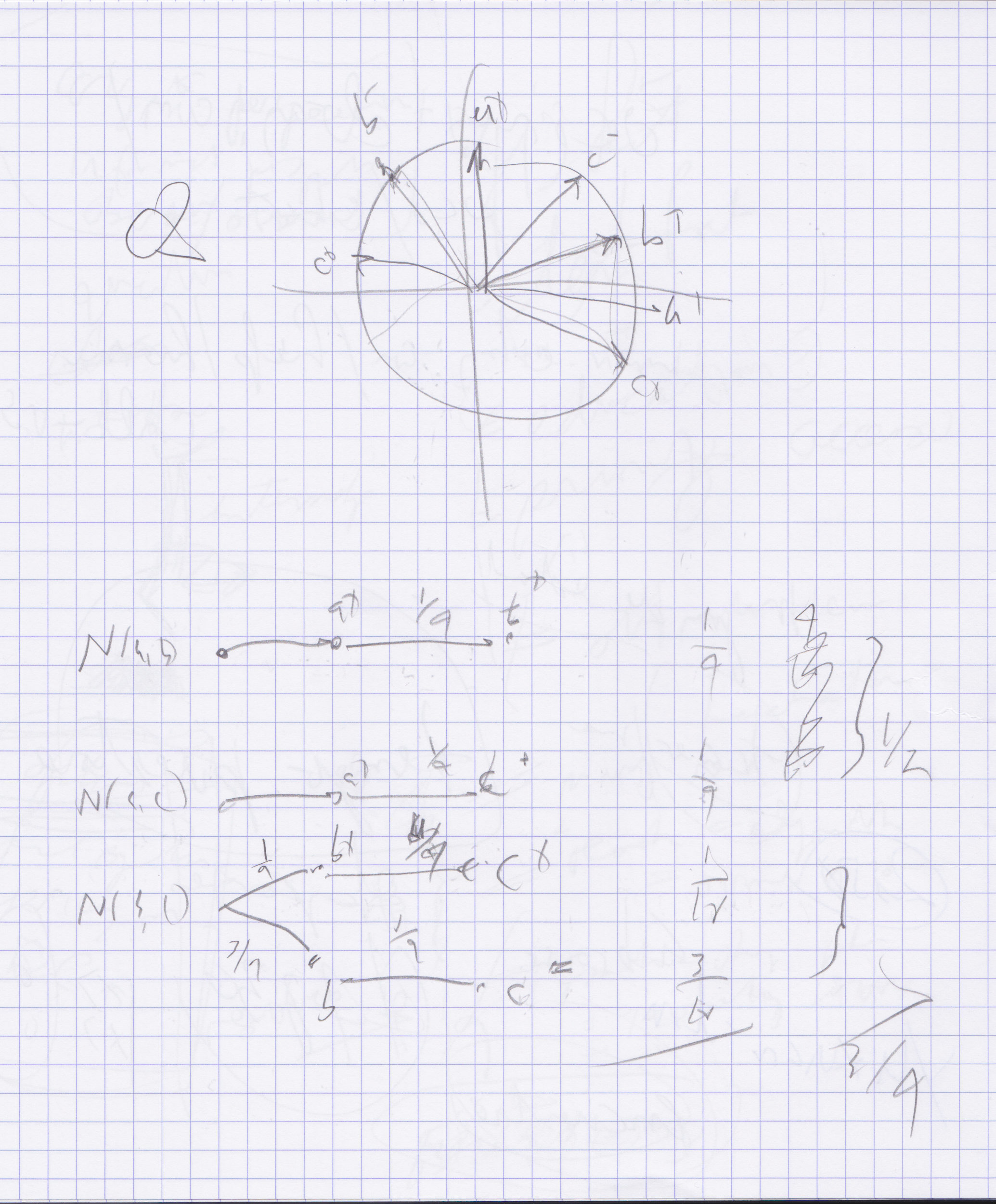 N(α,β,δ) = N(α,β) + N(β,δ) + N(δ,α) = 1/4 + 1/4 + 1/4 = 3/4.