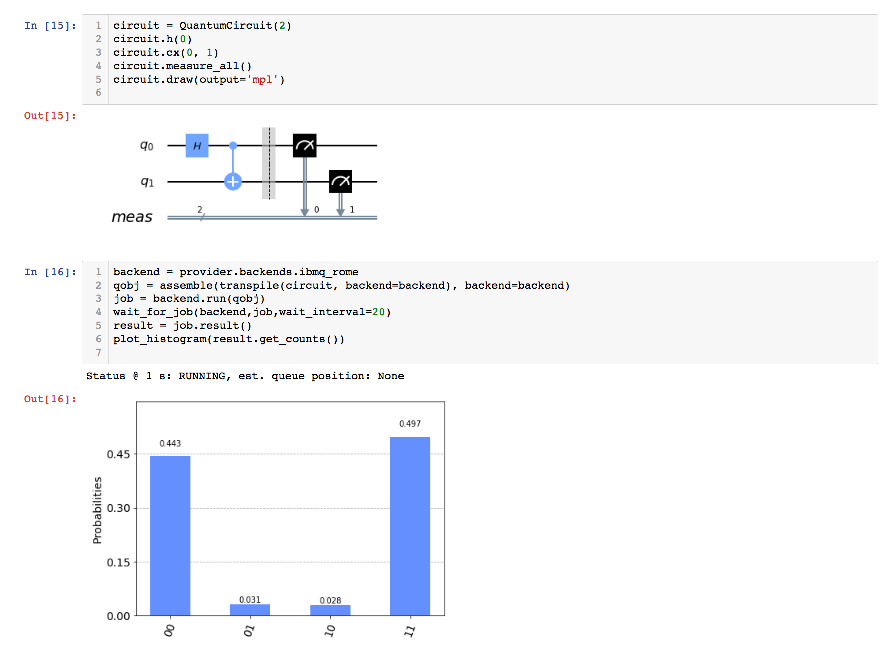 H(∣0❭) ⊗ H(∣0❭) = (1/√2) ( ∣0❭ + ∣1❭ ) ⊗ (1/√2) ( ∣0❭ + ∣1❭ ) = (1/2) ( ∣00❭ + ∣01❭ + ∣10❭ + ∣11❭ )