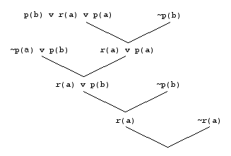 However, until the time of that last inference, it is not known at the time what value the variable X will instantiated to. Similarly, if ~r(c) is used in the last step instead of ~r(a) then it will still not conform. A proof tree that conforms is: