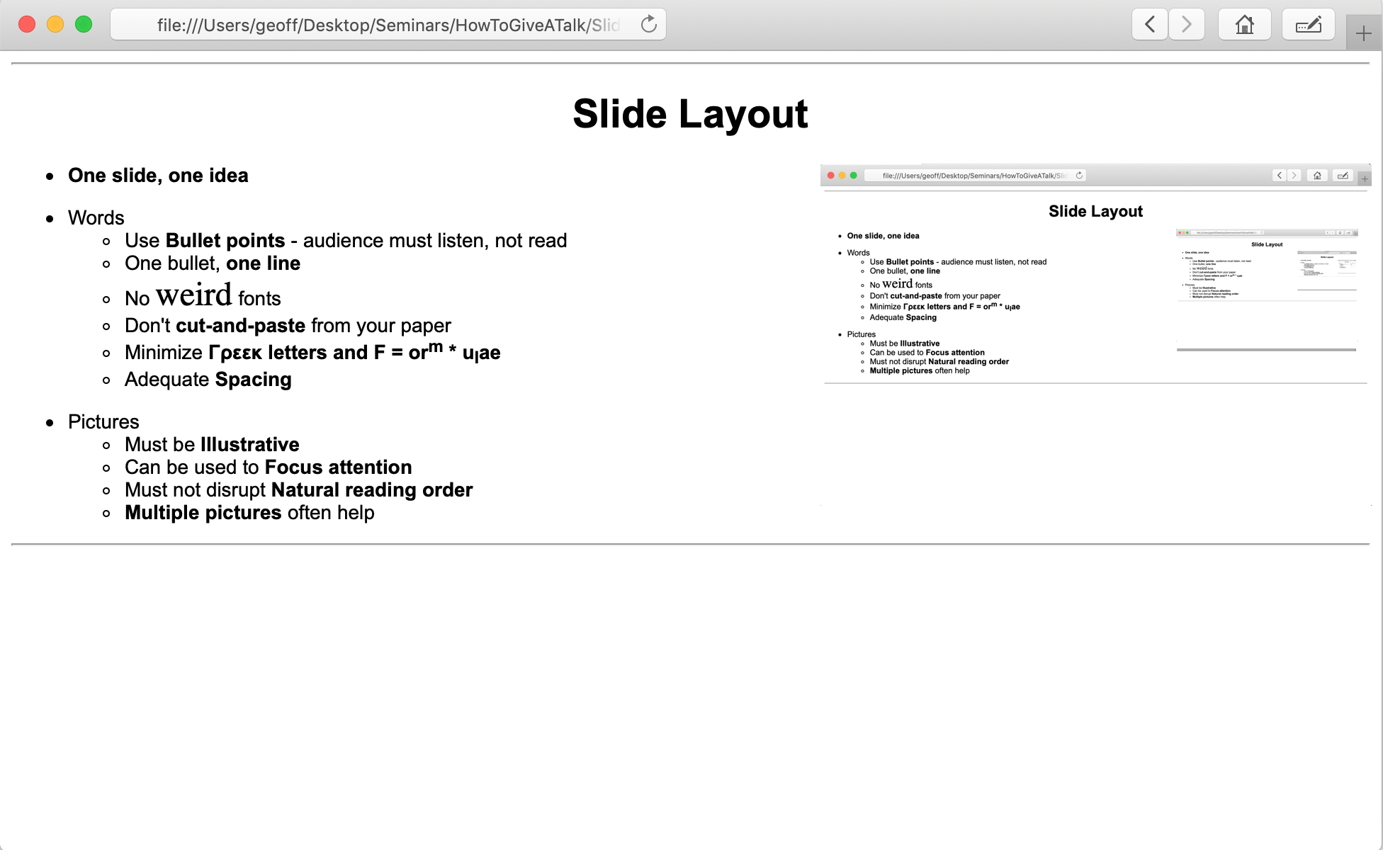 - One slide, one idea